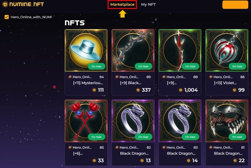 After selecting the items registered on the NUMINE NFT Marketplace page, you can purchase the items by consuming the NUMINE Coin you own when you proceed with the purchase.