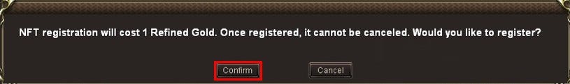 Click the NFT tab in the Exchange window that is displayed when you click the DRACO icon in the Bag inventory window to display the NFT Wallet Item Registration window and inventory.